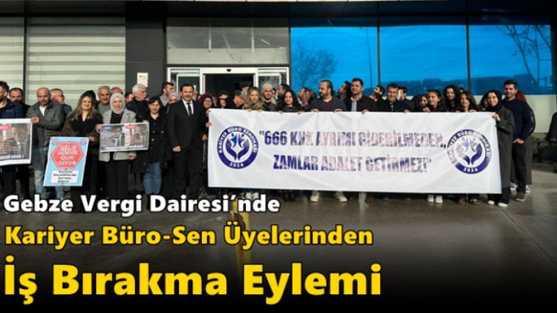 Gebze'de bulunan Kocaeli Vergi Dairesi Başkanlığı’nda görev yapan ve Kariyer Büro-Sen’e üye memurlar, TBMM Plan ve Bütçe Komisyonu’ndan geçen ve taşra teşkilatındaki kariyer mesleklerini kapsam dışı bırakan düzenlemeyi protesto ederek 1 Aralık 2025’te iş bırakma eylemi gerçekleştirdi.